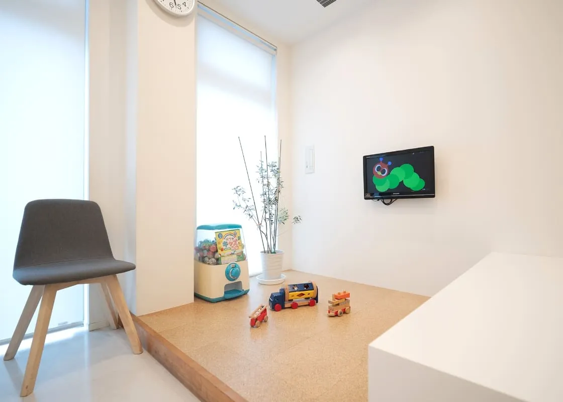 キッズルームで過ごすのも、保護者の方の隣で待つのも自由。スタッフがお子さまを見守っておりますので、安心して診療を受けていただけます。